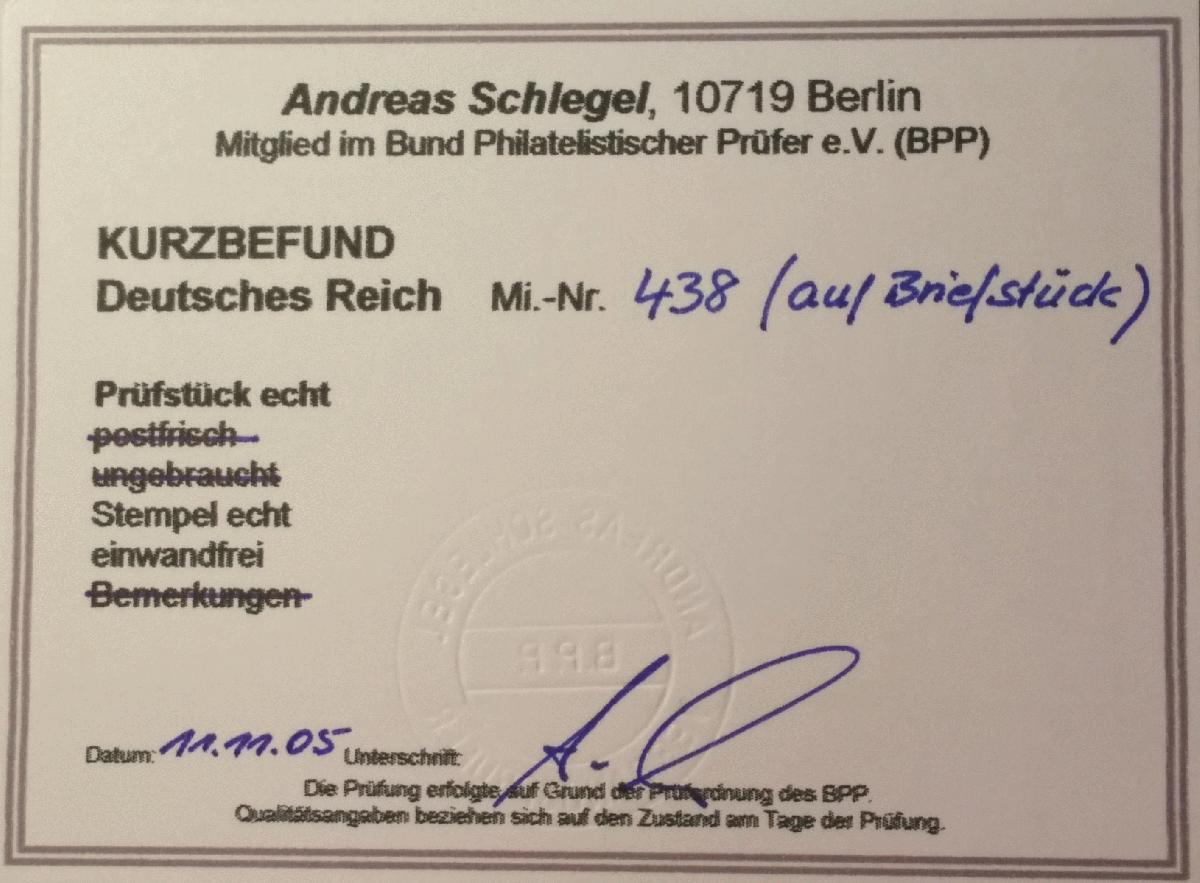 | Prüfer: | Schlegel, Andreas (BPP (Bund Philatelistischer Prüfer)) |