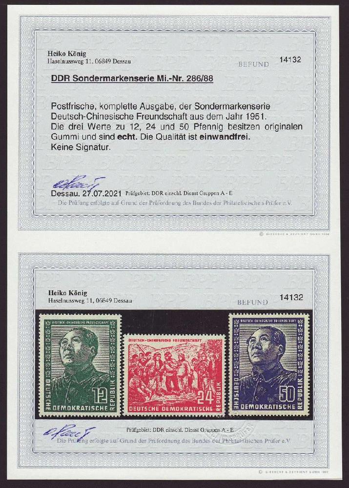 | Zusatzinformationen und Suchstichworte: | Christian E. Geigle Briefmarkenfachhandel Los 0003945929 DDR 1951, Deutsch-Chinesische Freundschaft, 3 W. kpl., postfrischer Luxussatz, unsigniert mit FB König "einwandfrei". Festpreis 165,00 EUR |