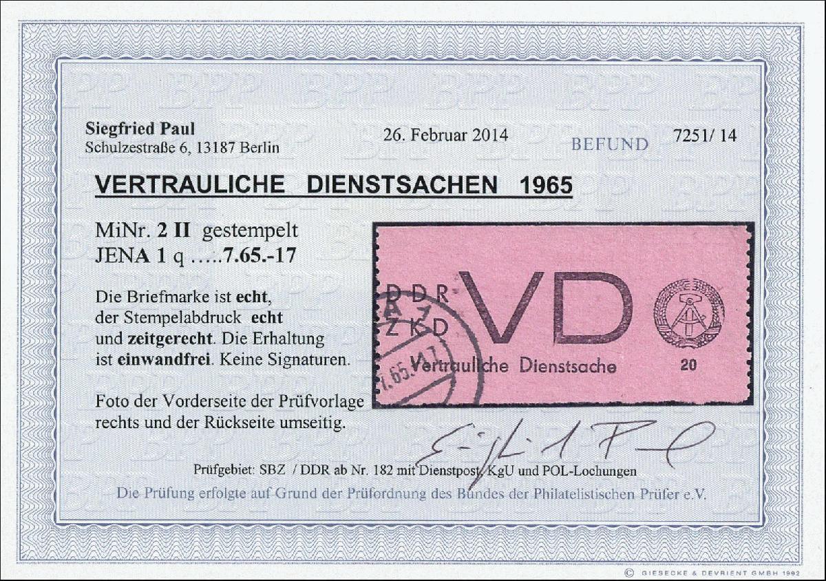 | Prüfgebiet: | DDR Dienstmarken - D Vertrauliche Dienstsachen |