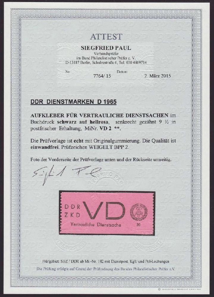 | Prüfgebiet: | DDR Dienstmarken - D Vertrauliche Dienstsachen |