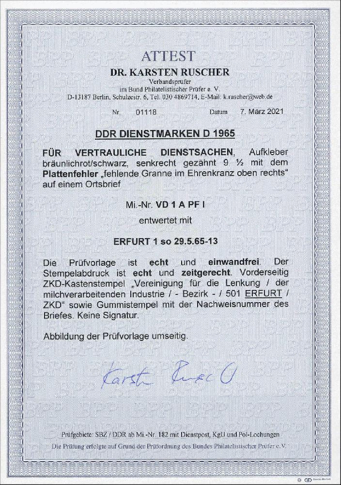 | Prüfgebiet: | DDR Dienstmarken - D Vertrauliche Dienstsachen |