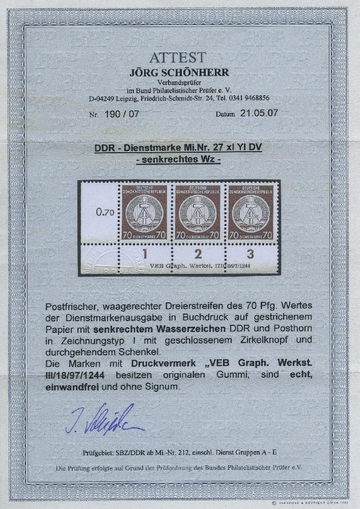 | Prüfgebiet: | DDR Dienstmarken - A Verwaltungspost B |