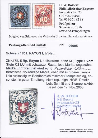 | Prüfer: | Bossert, H. W. (SBPV / ASEP (Schweizerischer Briefmarken-Prüfer-Verband)) |