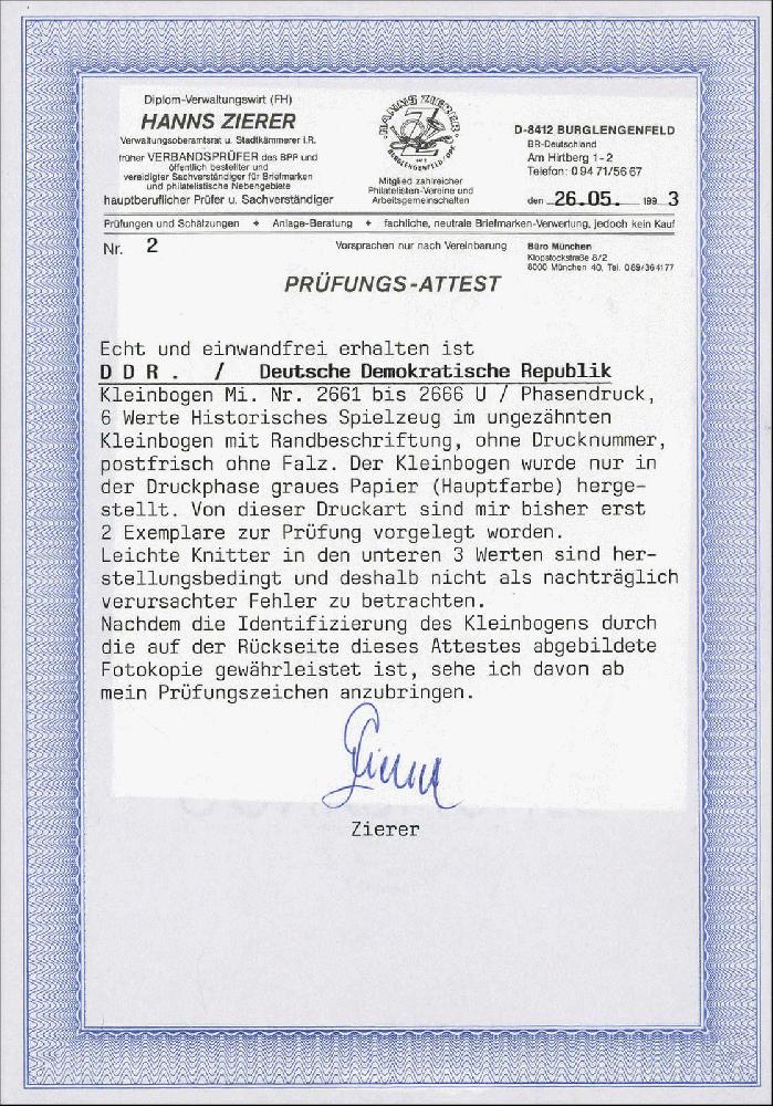 | Zusatzinformationen und Suchstichworte: | 185. Dresdner Briefmarken Auktion 21.-22. September 2022 Los 3996 DDR Historisches Spielzeug 1981 im Kleinbogen, ungezähnter Phasendruck, lediglich eine Farbe (Graugrün) gedruckt, postfrisch, leichte Bugspuren, Attest vom 26.5.93 Zierer (300,-) Ausruf 50,00 EUR |