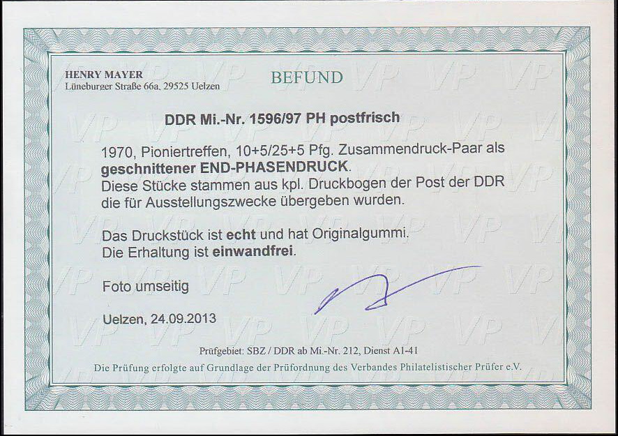| Zusatzinformationen und Suchstichworte: | Hodam 41. Auktion 12. November 2022 Los 3194 DDR 1596/7 "Pioniere", Phasendruck, Befund Mayer Ausruf 45,00 EUR |