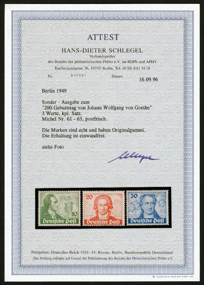| Zusatzinformationen und Suchstichworte: | Klüttermann - 4. Auktion 28. Juli - 5. August 2022 Los 9750 Berlin Goethe Serie kpl. Serie kpl., tadellos postfrisch, FA Schlegel "einwandfrei" Katalogwert: 320 Zuschlag 50,00 EUR |