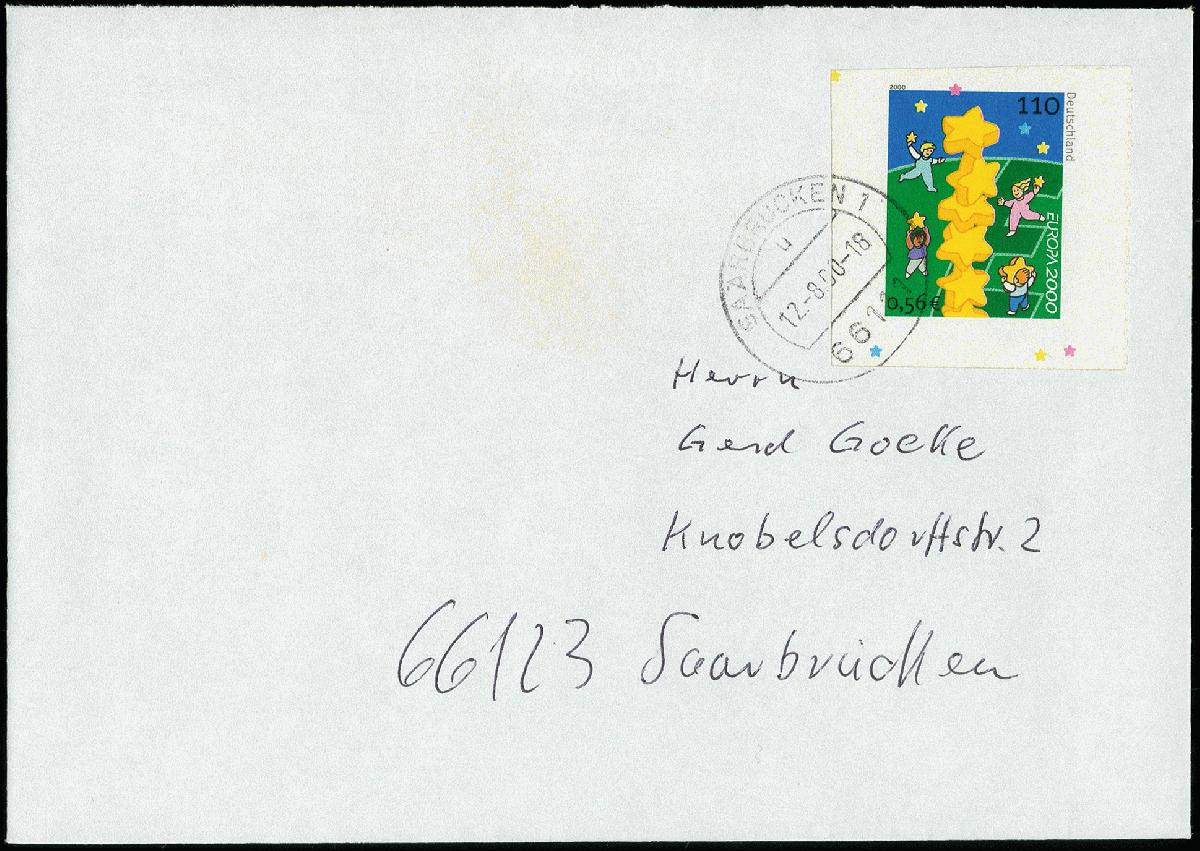 | Zusatzinformationen und Suchstichworte: | Heinrich Köhler 366. Auktion 19. - 24. März 2018 Los 2477 2000, CEPT 110 Pfg. ungestanzt aus Markenheftchen auf Ortsbrief aus "SAARBRÜCKEN 12.8.00", Fotoattest D. Schlegel BPP (2002) Zuschlag 140,00 EUR |
