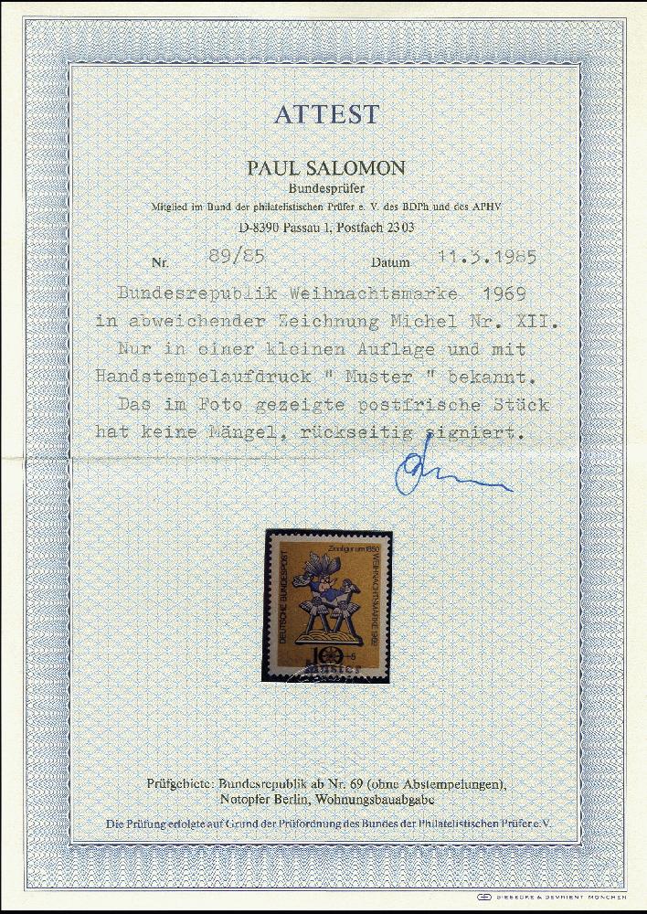 | Zusatzinformationen und Suchstichworte: | Heinrich Köhler 366. Auktion 19. - 24. März 2018 Los 2458 1969, sogenanntes "Pausbäckchen" 10 Pfg., postfrisch mit obligatorischem Handstempel "Muster", sign. Salomon BPP mit Fotoattest (1985) und Fotoattest Schlegel BPP (1976) (Mi. 2.600,-) Zuschlag 1.100,00 EUR |