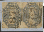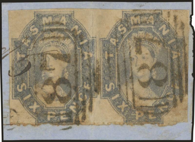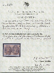 | Zusatzinformationen und Suchstichworte: | 249. Abacus Auktion 9. - 12. November 2022 Los 2344 Tasmanien 1863-71 Experimental Separations Pin Perf 13½-14½ 6d grey-violet SG 116 horizontal pair with perforations at the base only and otherwise Imperforate and cut from the sheet clear of the design, vertical crease between just impinges on the left-hand unit & a little stained from the gum, just tied to a small piece by two very fine strikes of the Second Allocation BN '87' of Table Cape (renamed Wynyard on 1.1.1882), Cat £5000+. Extremely rare. Ex Gary Diffen. RPSofV Certificate (2013) states "...pin perf 13½ at base and imperf between...is genuine" Ausruf 3.000,00 AUD |