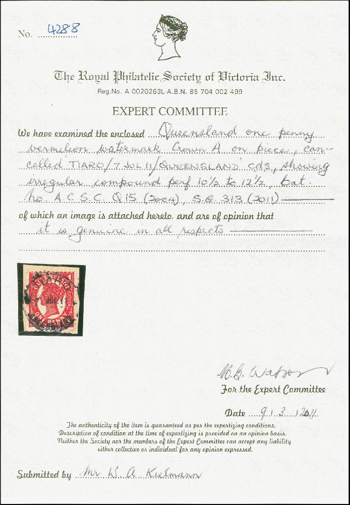 | Prüfer: | RPSVI, Royal Philatelic Society of Victoria Inc (Prüferkommission) |