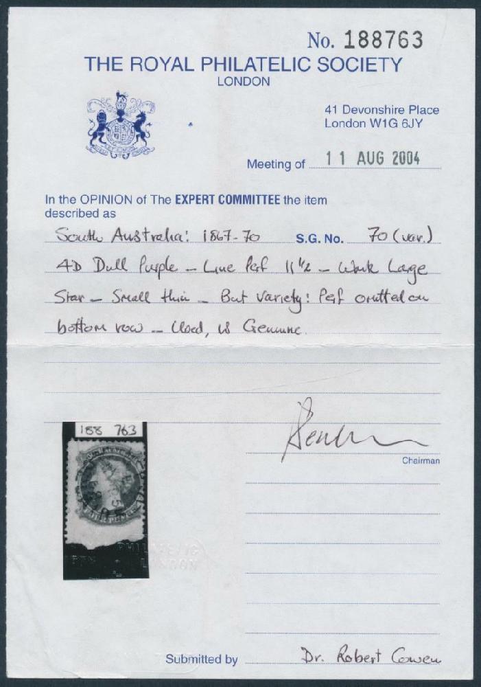| Prüfer: | RPSL, Royal Philatelic Society (Prüferkommission) |