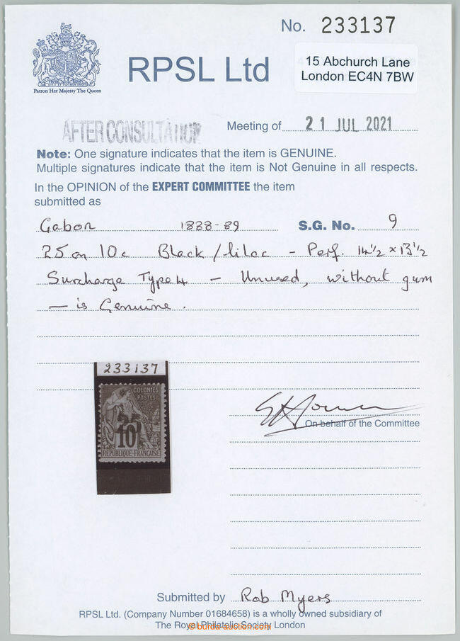 | Prüfer: | RPSL, Royal Philatelic Society (Prüferkommission) |