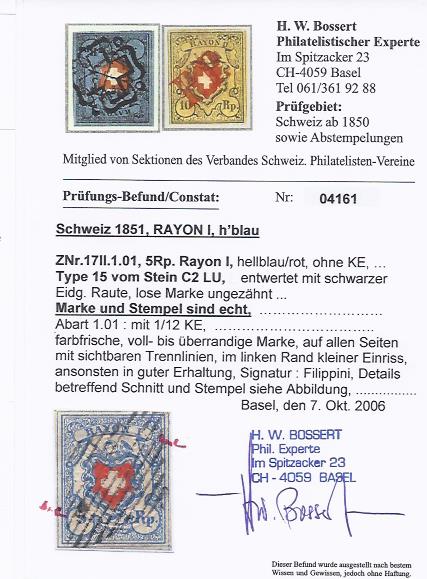 | Prüfer: | Bossert, H. W. (SBPV / ASEP (Schweizerischer Briefmarken-Prüfer-Verband)) |
