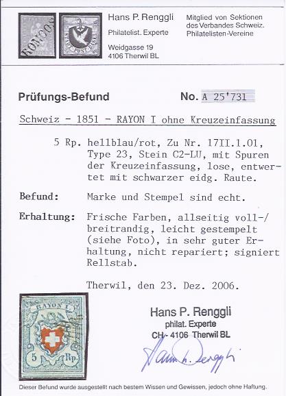 | Prüfer: | Renggli, Hans P. (SBPV / ASEP (Schweizerischer Briefmarken-Prüfer-Verband)) |