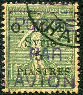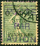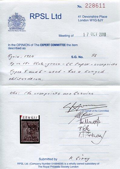 | Zusatzinformationen und Suchstichworte: | Balkanphila - Webshop 2019 NEU Los 10017 (D) SyrienSyria: 1920 (14 December). POSTE PAR AVION handstamped 5pi surcharged on 15c French stamps with part Halep cds. Accompanied by 2018 RPSL certificate states that handstamp is genuine but the obliteration is forgery. Sg. 58 (B11259) Festpreis 45,00 GBP |