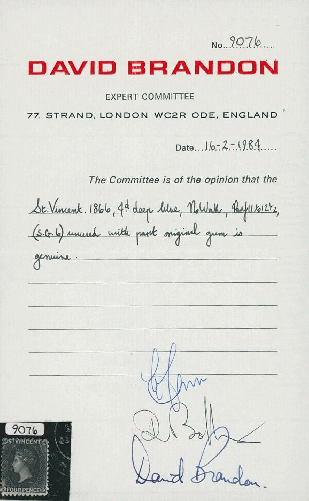 | Zusatzinformationen und Suchstichworte: | Ulrich Felzmann 34. e@uction 5. - 9. September 2022 Los 12289 St. Vincent 1866, 4 d Victoria deep blue, no wmk., unused with part original gum, fresh colour, very fine, cert. Brandon (SG 6), 450,- Zuschlag 80,00 EUR |