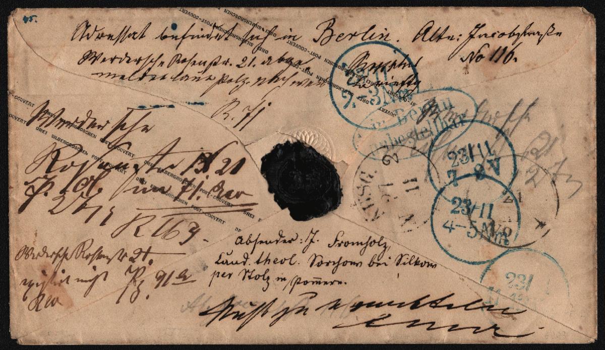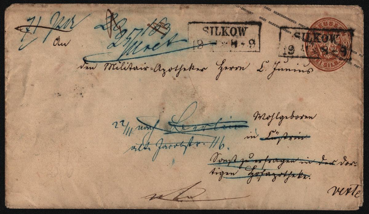 | Zusatzinformationen und Suchstichworte: | 1863 Irrläufer Silkow - Cüstrin weitergeleitet Berlin |