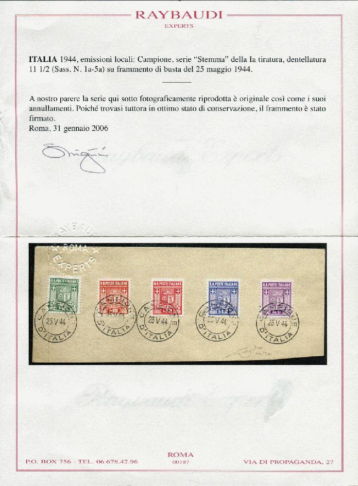 | Prüfgebiet: | Italien Lokalausgaben Gemeinde Campione 1944 |