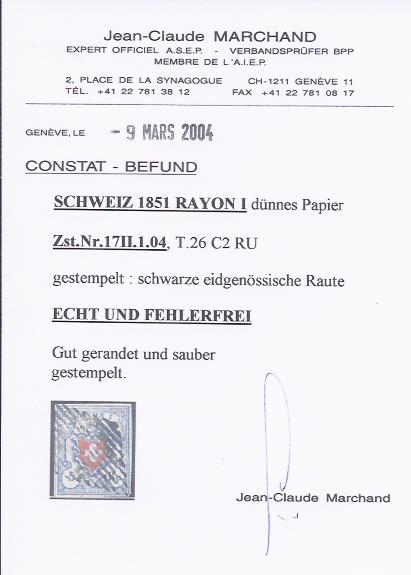 | Prüfer: | Marchand, Jean-Claude (SBPV / ASEP (Schweizerischer Briefmarken-Prüfer-Verband)) |