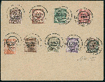 | Zusatzinformationen und Suchstichworte: | 26. Ferrario Auktion 1. Oktober 2022 Los 1547 Italien Besetzung I. WK Trentino TRENTINO ALTO ADIGE 1918 - Venezia Tridentina, serie completa con soprastampa capovolta (19/27), usati su busta non viaggiata, con annullo di Trento 15/12/1918. Si tratta dell'UNICA SERIE COMPLETA USATA NOTA con tale varietà, in quanto i valori da 40, 45, 50 cent. e 1 lira non risultano finora catalogati e censiti. Rarità del settore. Cert. Ferrario Ausruf 1.500,00 EUR |