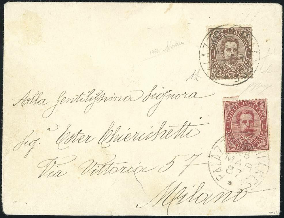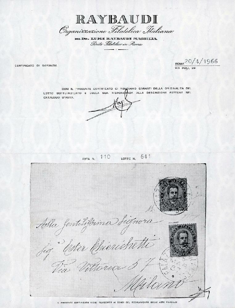 | Zusatzinformationen und Suchstichworte: | 26. Ferrario Auktion 1. Oktober 2022 Los 957 Italien Königreich - Umberto I 1887 - 30 cent. e 10 cent. Umberto I (41,38), perfetti, su busta da Palazzolo Milanese 26/3/1887 a Milano. Splendida e rara! G.Oliva, Fiecchi, Sorani, cert. A.Diena e Raybaudi. Cat. € 31500 Ausruf 3.000,00 EUR |