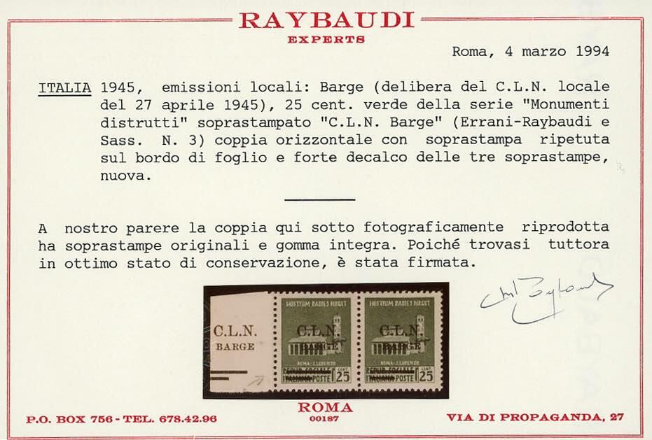 | Prüfgebiet: | Italien Lokalausgaben C.L.N. (verschiedene Orte) 1943-1945 |