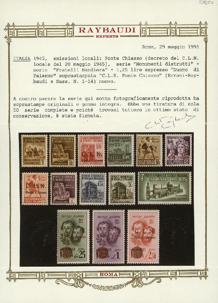 | Prüfgebiet: | Italien Lokalausgaben C.L.N. (verschiedene Orte) 1943-1945 |