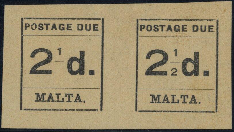 | Zusatzinformationen und Suchstichworte: | Corbitts 169. Briefmarken Auktion 31. August 2022 Los 702 Malta 1925 2½d schwarz Nachgebühr ungezähntes Paar, links h/Briefmarke mit 2 von ½ ausgelassen Abart, M (Gummi ein etwas getöntem), SG. D5/ein, klare RPS Attest 1991. (2) Katalog £900 Ausruf 200,00 GBP |
