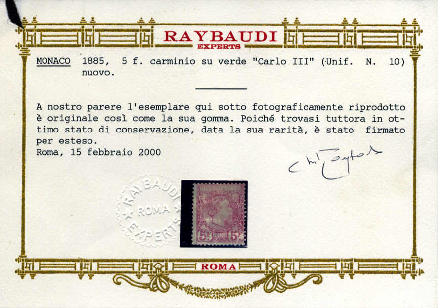 | Zusatzinformationen und Suchstichworte: | 75. AAK Phila GmbH Auktion 9. September 2022 Los 418 D Monaco 5 Fr Fürst Charles, postfr. Pracht (leichter rs. Diagonalbug) m. vollem Orig´gummi (Eckzahn verschönt), gepr. u. mit einwandfreiem Befund Raybaudi, Mi. f. * schon 3600€ Ausruf 700,00 EUR |
