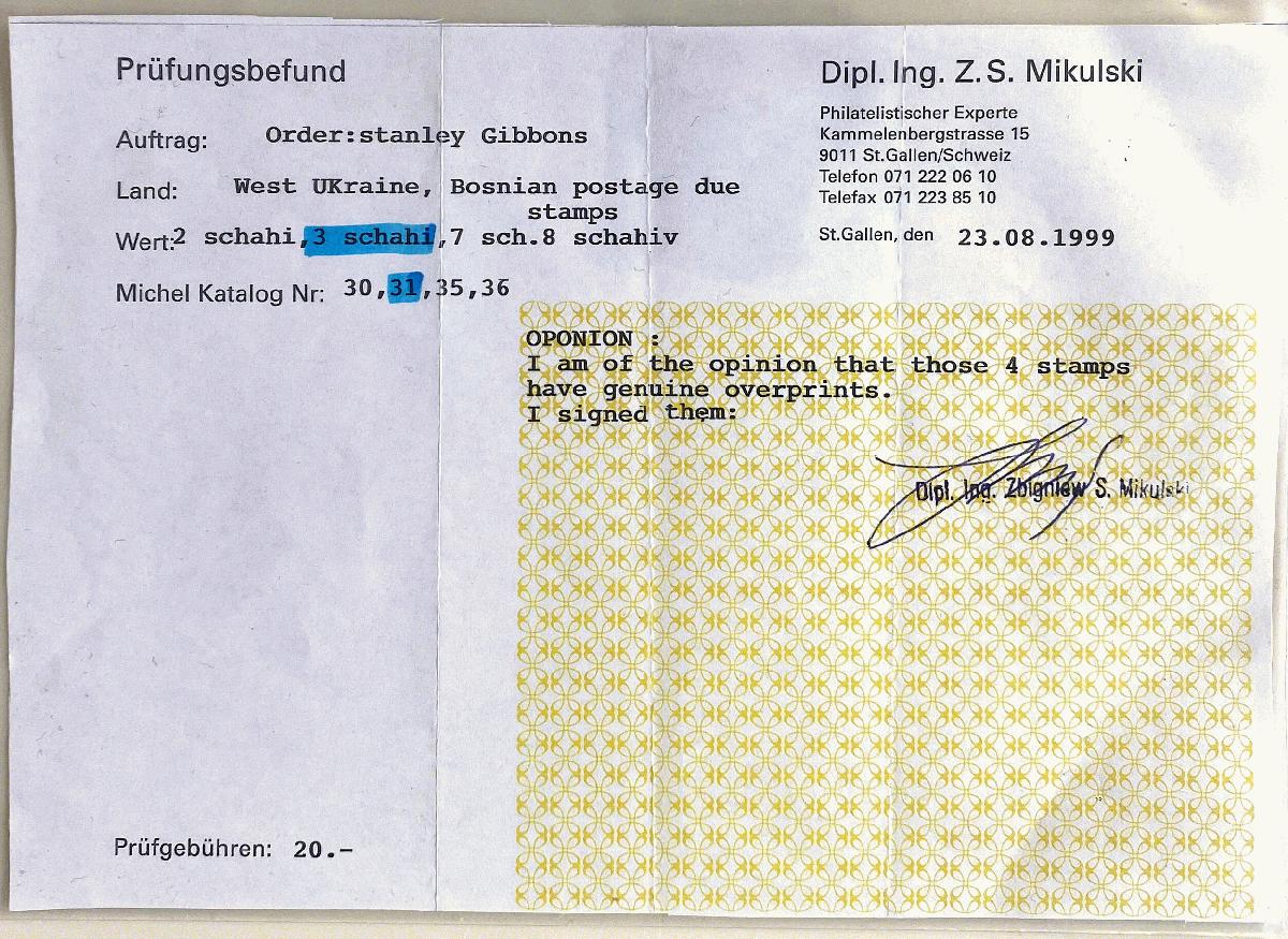 | Prüfer: | Mikulski, Zbigniew S. (AIEP (Association internationale des experts en philatélie)) |