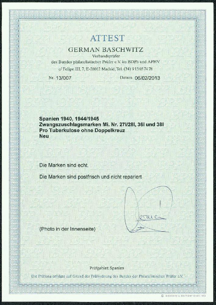 | Zusatzinformationen und Suchstichworte: | Gert Müller 115. Auktion 25. - 27. August 2022 Los 3179 Spanien Zwangszuschlag des Staates Zwangszuschlagsmarken 1940/45, vier verschiedene Werte mit Abart "OHNE DOPPELKREUZ", farbfrisch und tadellos postfr. Selten angeboten! Fotoattest Baschwitz BPP Ausruf 150,00 EUR |