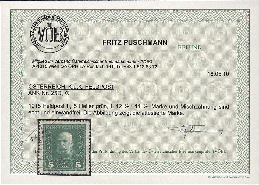 | Prüfer: | Puschmann, Fritz (VÖB (Verband Österreichischer Briefmarkenprüfer)) |