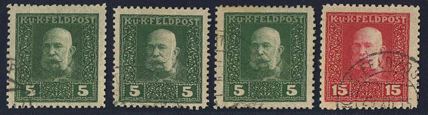 | Zusatzinformationen und Suchstichworte: | Merkurphila 50. Auktion 27. August 2022 Los 575 Österreich Feldpost Allgemeine Ausgaben Österr.-Ung. Feldpost, 1915, Nr 25 + 30, jeweils gestempelt in allen gelisteten Zähnungen 25 B (11 1/2), C (11 1/2 : 12 1/2 geprüft MATL), und bessere D (12 1/12 : 11 1/2, Befund Puschmann) inkl. 30 B (11 1/2), tadellose Erhaltung! KW 980€ Ausruf 150,00 EUR |