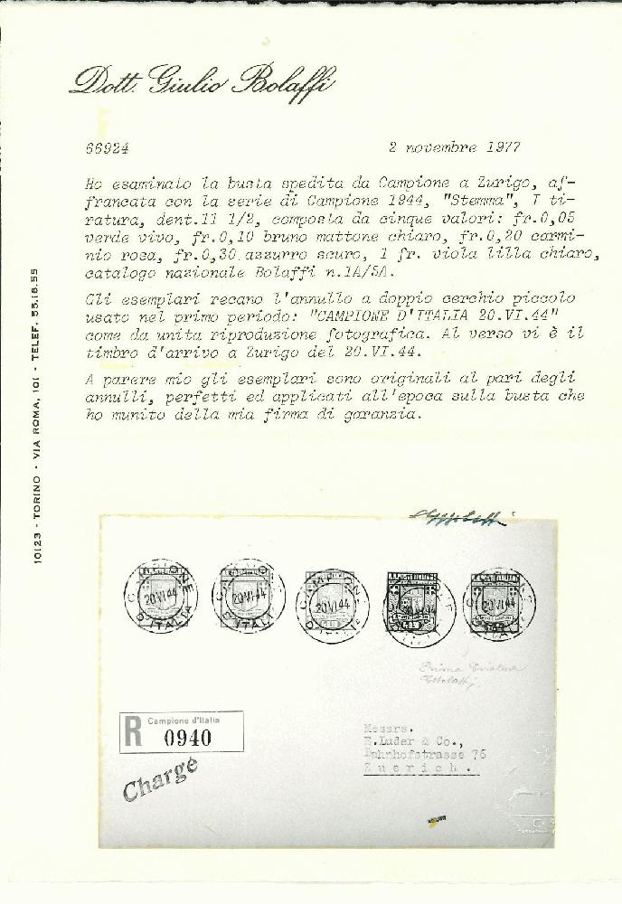 | Prüfgebiet: | Italien Lokalausgaben Gemeinde Campione 1944 |
