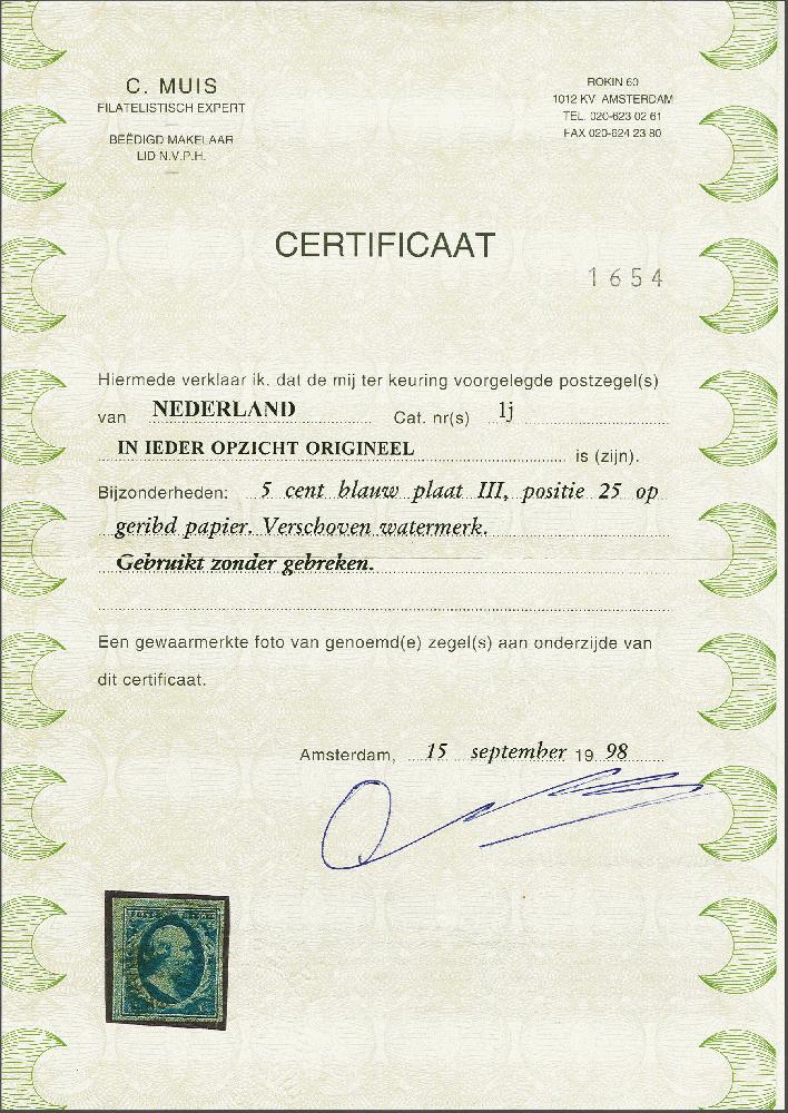 | Zusatzinformationen und Suchstichworte: | Corinphila Veilingen 255. Auktion 15. - 17. September 2022 Los 2012 Niederlande 5 cent blauw plaat III pos. 25 met sterk verschoven watermerk op geribd papier, pracht ex. met certificaat Muis 1998 Ausruf 80,00 EUR |