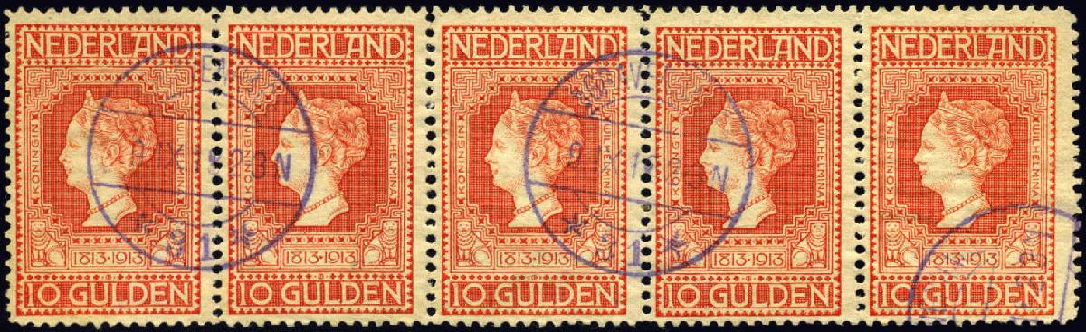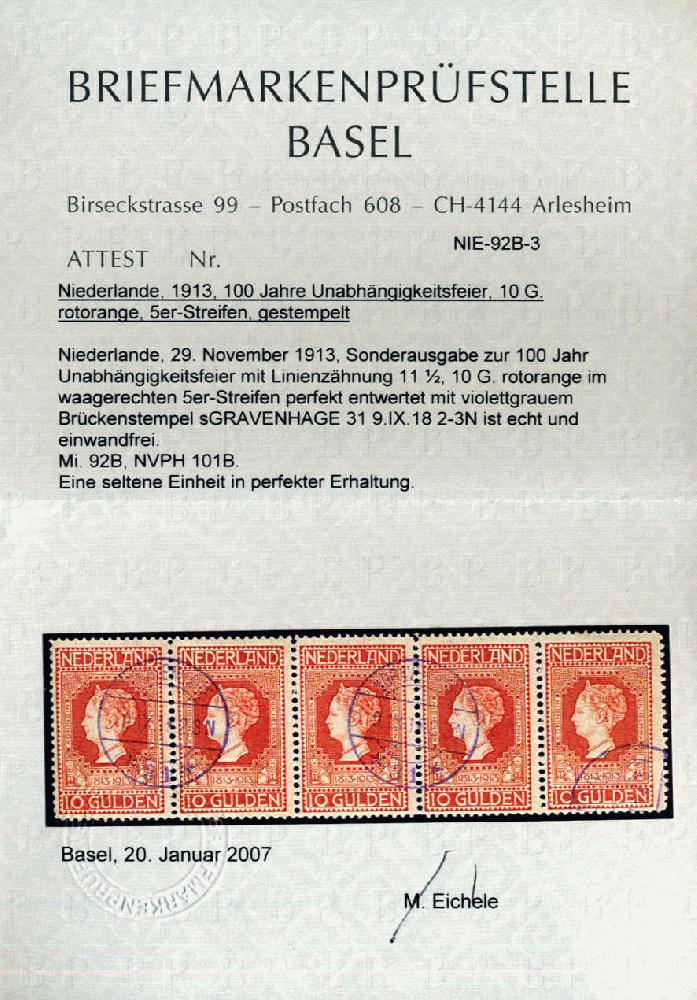 | Zusatzinformationen und Suchstichworte: | 75. AAK Phila GmbH Auktion 9. September 2022 Los 425 D Niederlande 10 G Wilhelmina im waagr. 5er-Streifen (gefaltet), 3x rundgest. Luxus m. einwandfreien Attesten BPSB u. Vleeming BPP! Imposante Einheit f.d. große Slg.! Zuschlag 900,00 EUR |