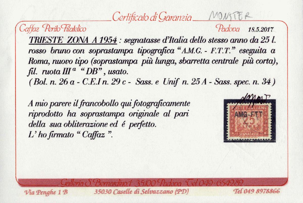 | Zusatzinformationen und Suchstichworte: | 76. Viennafil Fernauktion 7. November 2022 Los 22676 Triest Zone A 1954, 25 Lire rosso bruno con soprastampa "modificata", usato, cert. Caffaz (S. 25A) Ausruf 160,00 EUR |