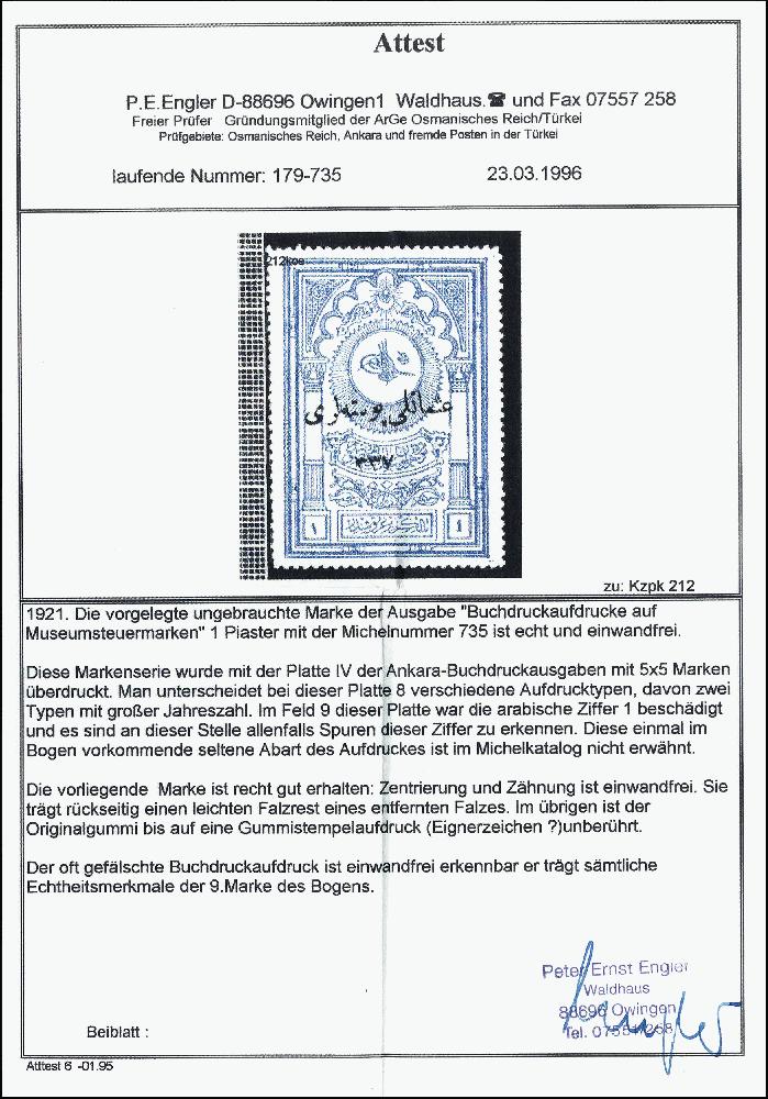 | Prüfgebiet: | Türkei (ab Mi-Nr. 690 von 1920) |