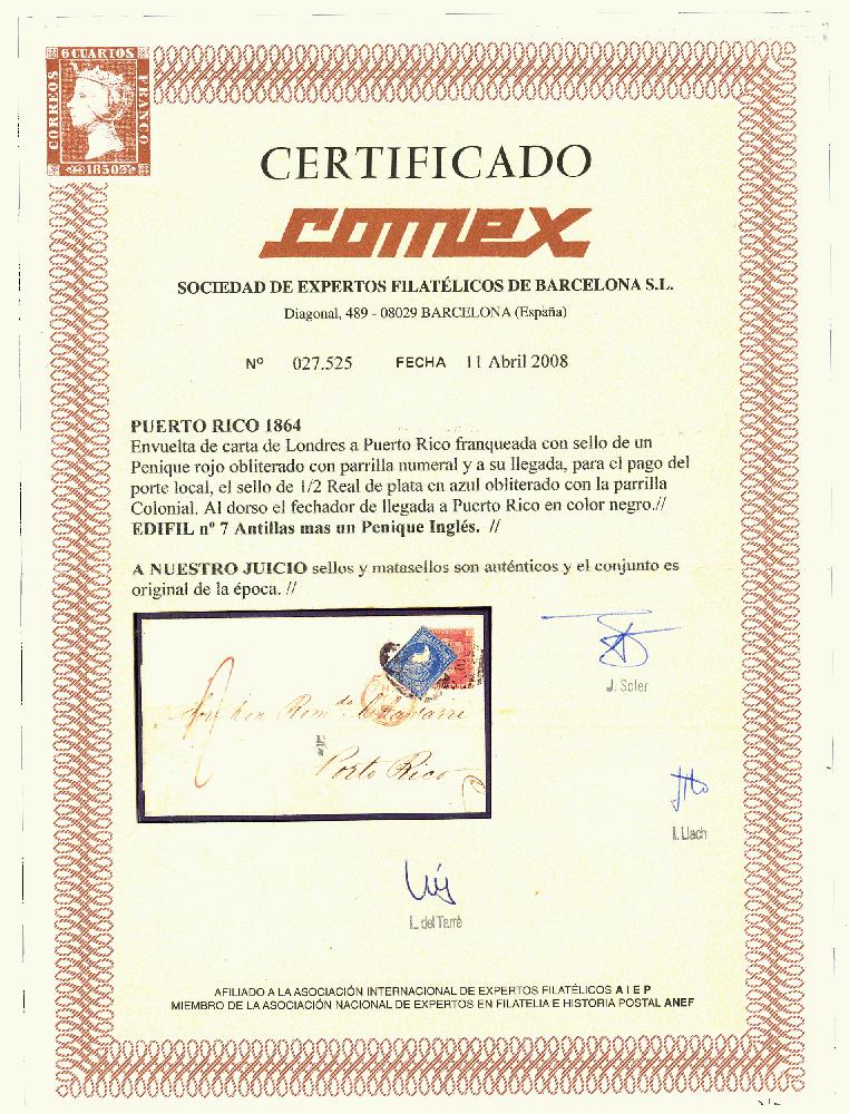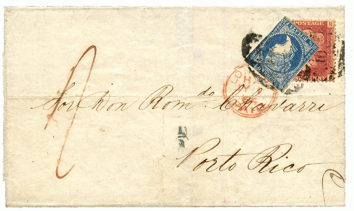 | Zusatzinformationen und Suchstichworte: | Lugdunum 122. Auktion 3. Oktober 2022 Los 1424 Puerto Rico 1864 Großbritannien 1d rot und PORTO-RICO 1/2 R. auf Brief von London zu PORTO-RICO. Selten Mischfrankatur. COMEX Attest (2008) + Scheller (2008). Vvf Zuschlag 2.473,00 EUR |