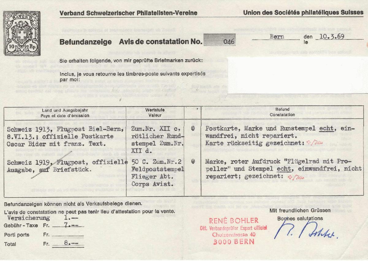 | Prüfer: | Bohler, René (SBPV / ASEP (Schweizerischer Briefmarken-Prüfer-Verband)) |
