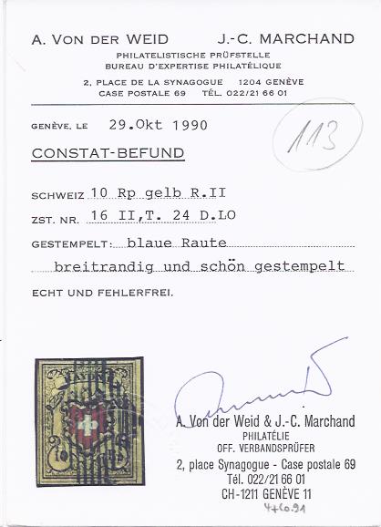| Prüfer: | von der Weid, Alain (SBPV / ASEP (Schweizerischer Briefmarken-Prüfer-Verband)) |