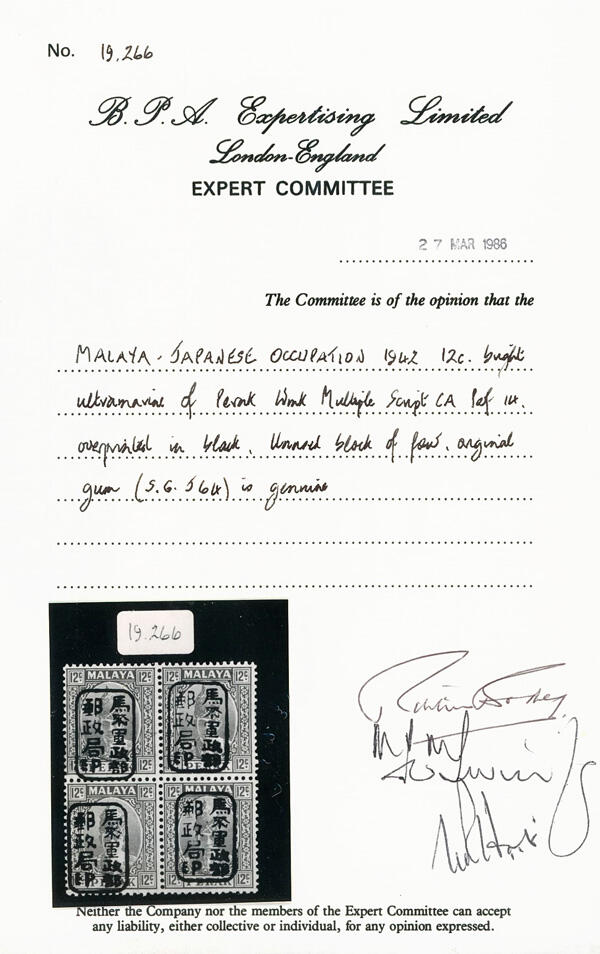 | Prüfgebiet: | Malaiische Staaten - japanische Besetzung |