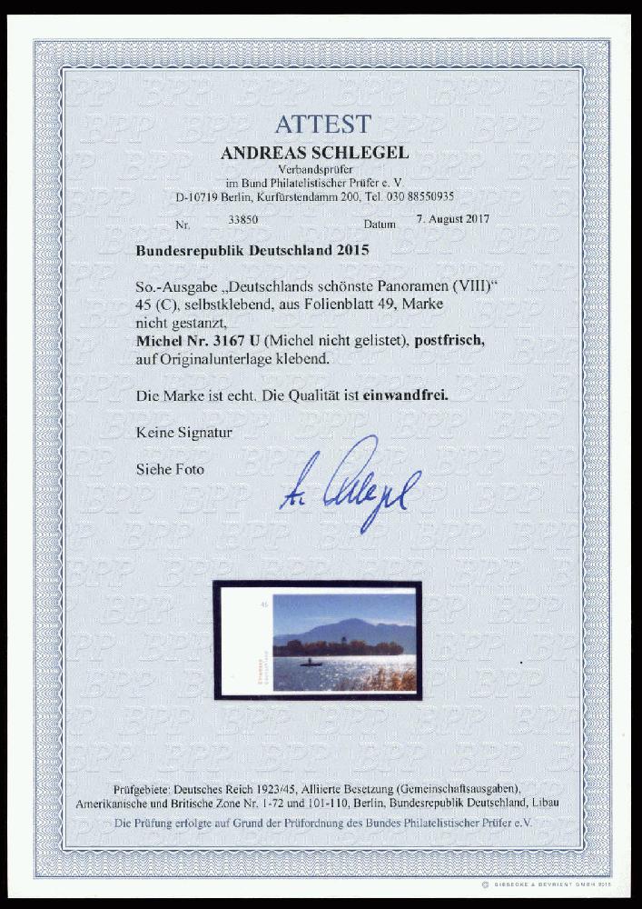 | Prüfer: | Schlegel, Andreas (BPP (Bund Philatelistischer Prüfer)) |