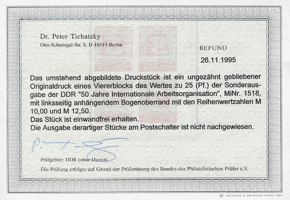 | Zusatzinformationen und Suchstichworte: | Schlegel Online-Shop Los 4020300092 DDR 1969, 25 Pf. 50 Jahre IAO, ungezähnt. Offizieller Druck zu Ausstellungszwecken für die Deutsche Post der DDR. Geringe Auflage, Kopiebefund Dr. Tichatzky BPP Festpreis 50,00 EUR |