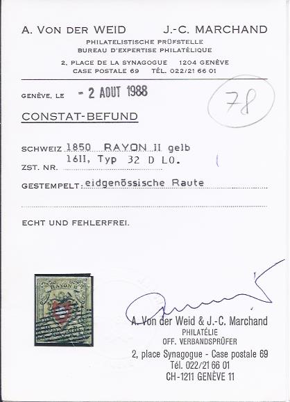 | Prüfer: | von der Weid, Alain (SBPV / ASEP (Schweizerischer Briefmarken-Prüfer-Verband)) |