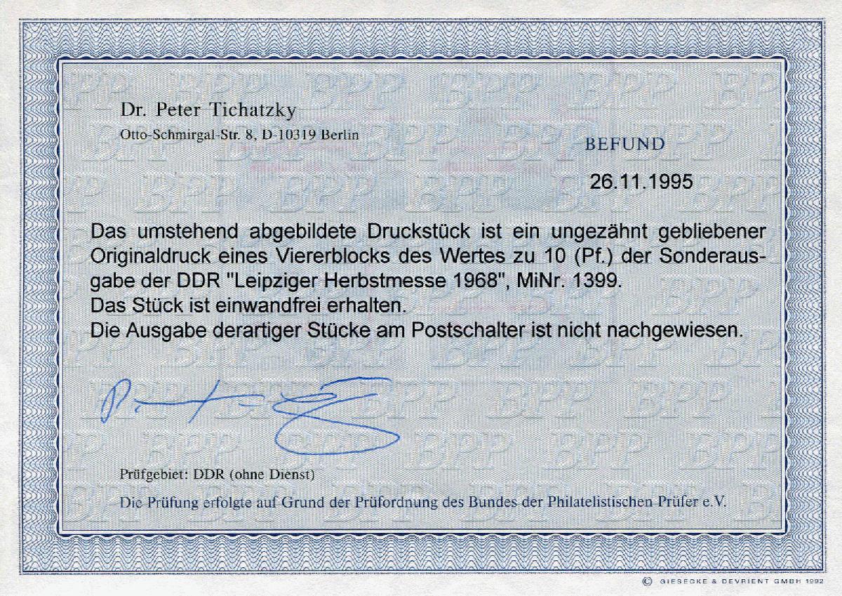 | Zusatzinformationen und Suchstichworte: | Schlegel Online-Shop Los 4020300033 DDR 1968, 10 Pf. Leipziger Herbstmesse, ungezähnt. Offizieller Druck zu Ausstellungszwecken für die Deutsche Post der DDR. Geringe Auflage, Befund Dr. Tichatzky BPP Festpreis 50,00 EUR |