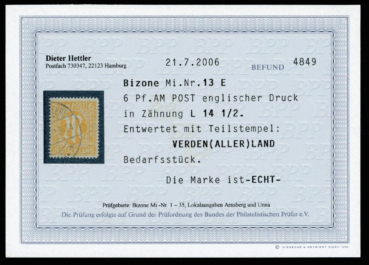 | Prüfgebiet: | Alliierte Besetzung Bizone |