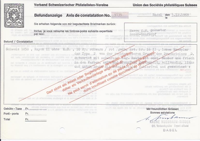 | Prüfer: | Nussbaum-Bisser, André (SBPV / ASEP (Schweizerischer Briefmarken-Prüfer-Verband)) |