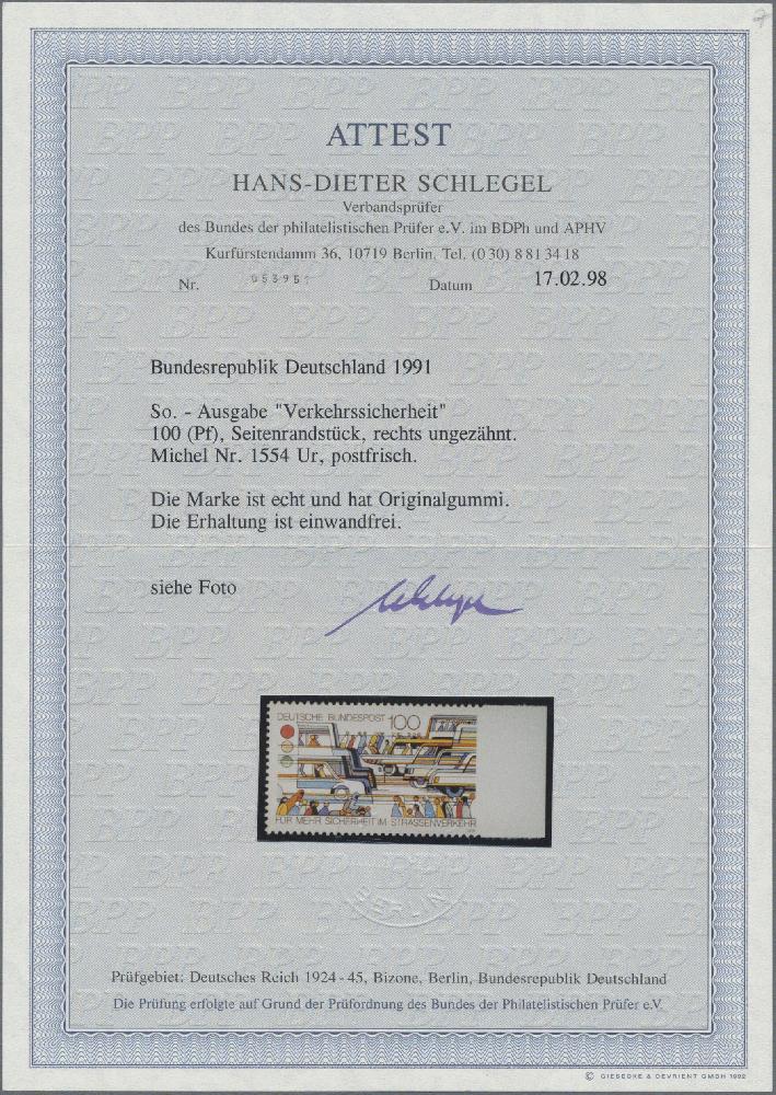 | Zusatzinformationen und Suchstichworte: | Christoph Gärtner 54. Auktion 19. Oktober 2022 Los 6442 D Bundesrepublik Deutschland 1991, 100 Pf., Verkehrssicherheit, Abart "RECHTS UNGEZÄHNT", vom rechten Bogenrand, tadellos postfrisch. Fotoattest Schlegel BPP: "Die Marke ist echt und hat Originalgummi. Die Erhaltung ist einwandfrei.". Mi. 500,- EUR Ausruf 100,00 EUR |