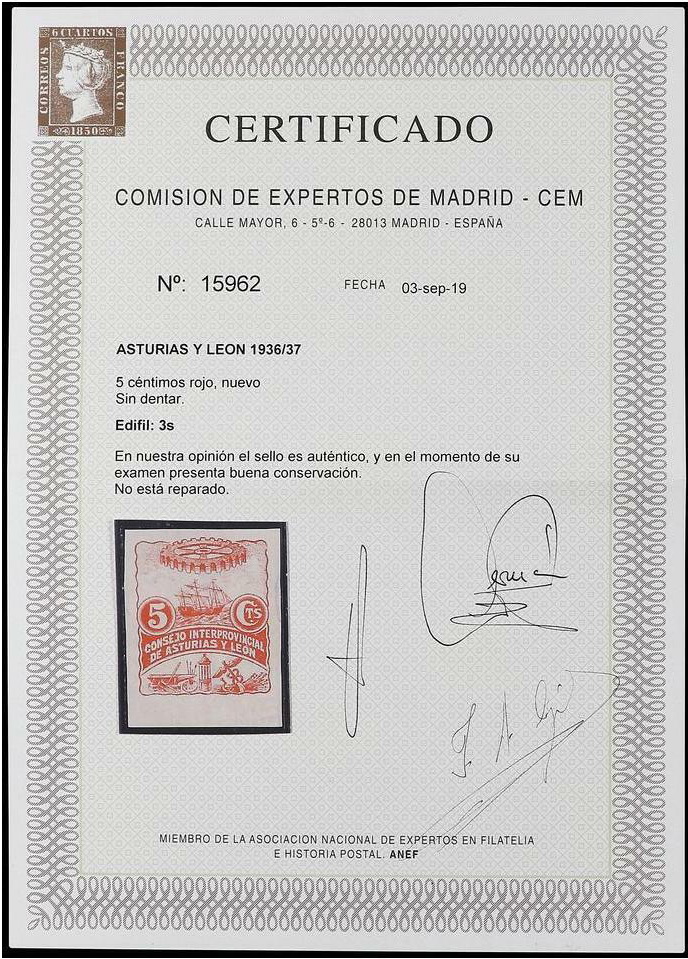 | Zusatzinformationen und Suchstichworte: | Soler y Llach - 779. Auktion - Spanien und Kolonien 17. - 18. Oktober 2022 Los 803 Spanien Lokalausgabe Asturien ESPAÑA: ASTURIAS Y LEON. 5 cts. rojo SIN DENTAR. RARO. Ed.3s. Cat. 320€. Zuschlag 150,00 EUR |